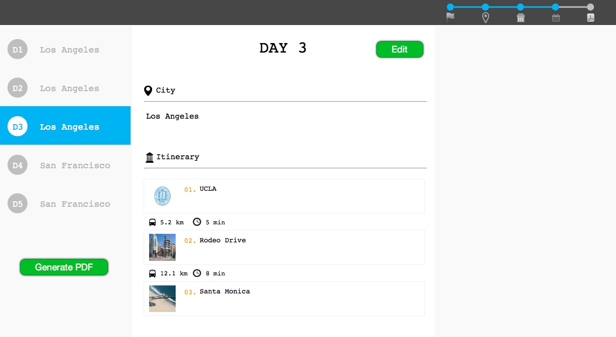 GoTrip addresses the problem that the user doesn’t know the area that they want to visit well, and may not travel optimally from place to place. Our application ensures that the user will not spend unnecessary time travelling when they could be spending that time where they want to be, and give them an idea of how many activities are feasible in each day of their vacation. By emailing users their travel plan and offering a print function, we will ensure that users have their plan handily at any time.