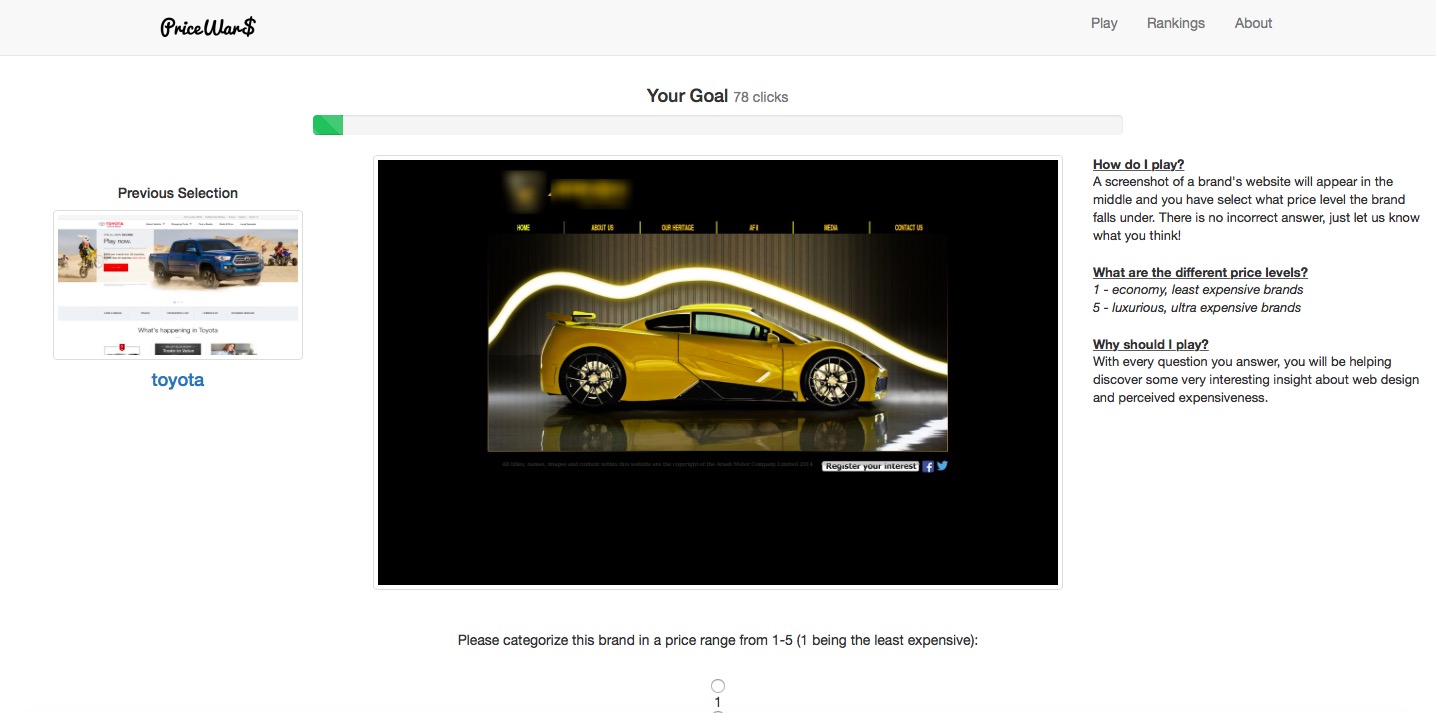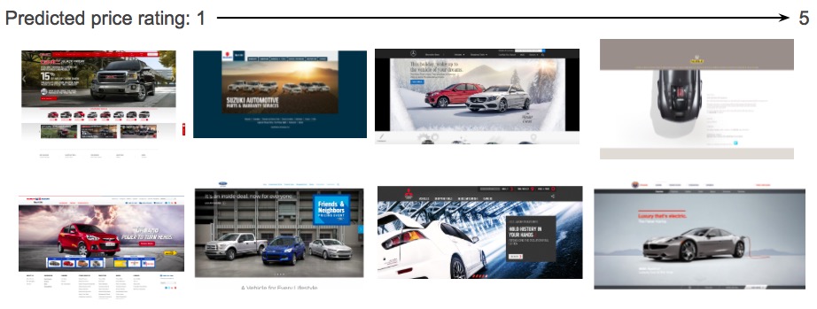 We extracted features such as whitespace, #colors, #products, and mean H/S/V from web design and got perceived price rating of brand websites from a crowdsourcing platform. A model then was proposed to analyze what web design features are discriminant to the perceived price of a brand. We implemented random forest with backward elimination (4-fold cross validation) and ran the model on watch and car brands. Features like #colors, #products, whitespace, and SDev of saturation are discriminant to perceived price rating.